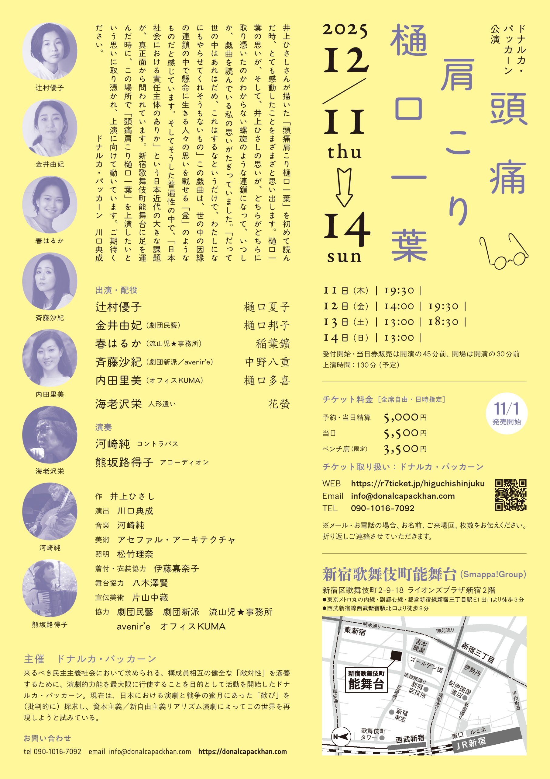 新宿歌舞伎町能舞台で演劇『頭痛肩こり樋口一葉』(ドナルカ・パッカーン主催)を開催します。