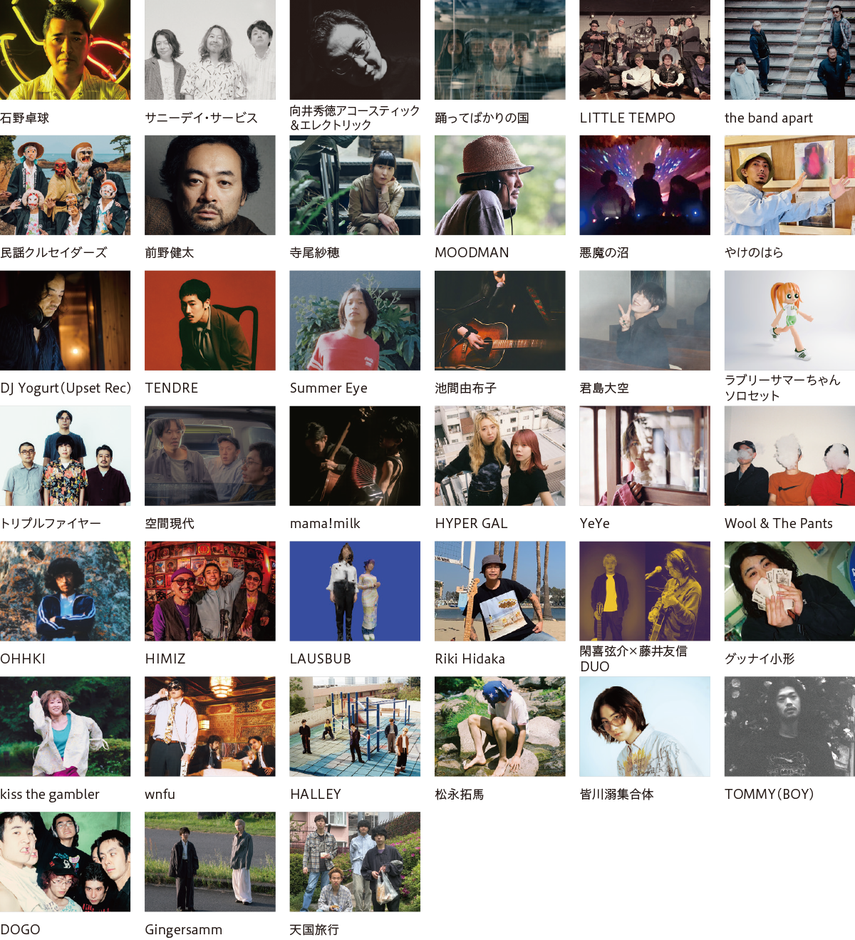 LITTLE TEMPO / the band apart / 民謡クルセイダーズ / 前野健太 / 寺尾紗穂 / MOODMAN /